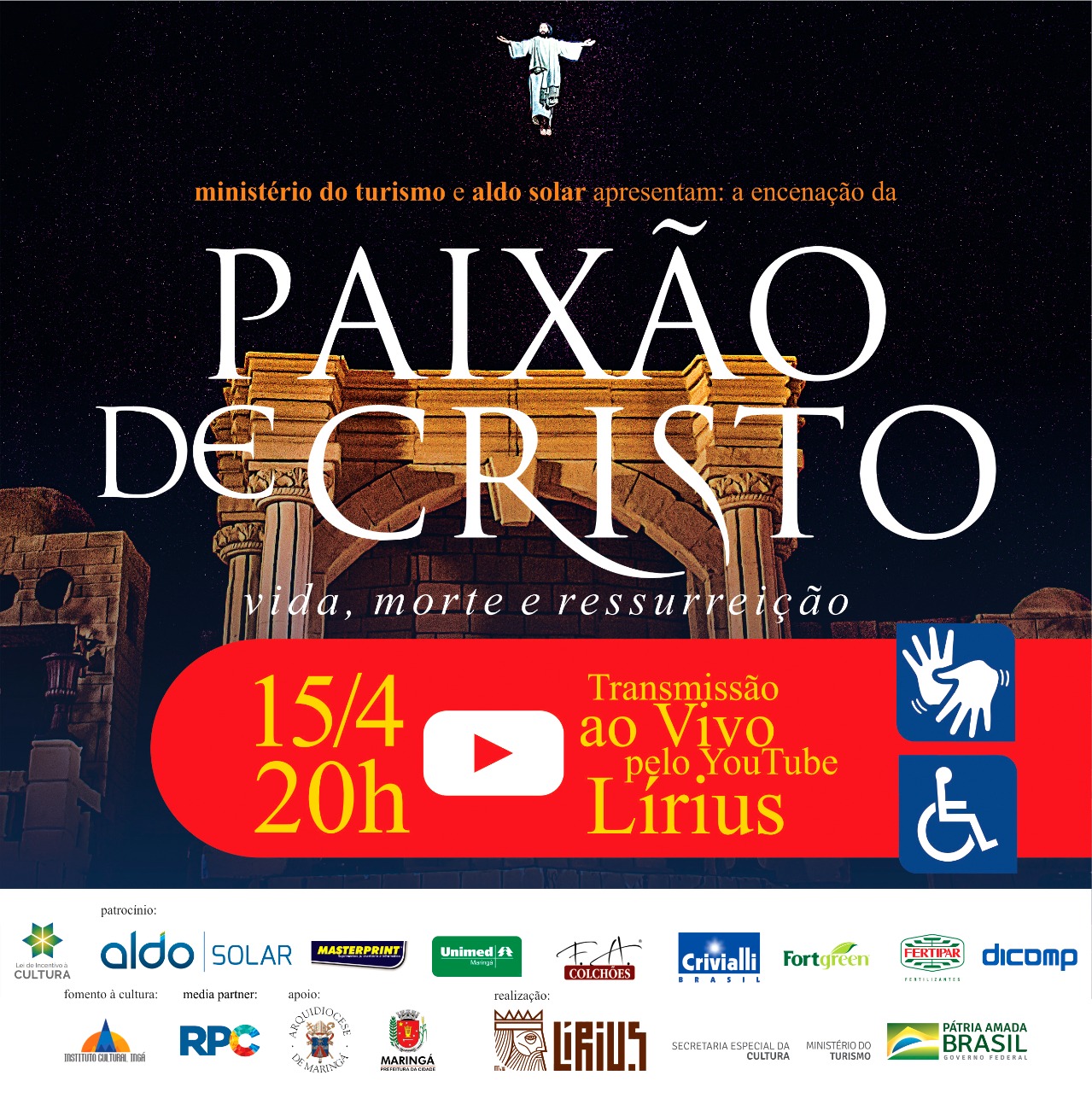 A encenação contará com área reservada em frente ao palco para idosos e pessoa com deficiência. Surdos poderão assistir ao espetáculo com intérpretes de Libras. Na Sexta-feira Santa o espetáculo será transmitido ao vivo pelo YouTube.