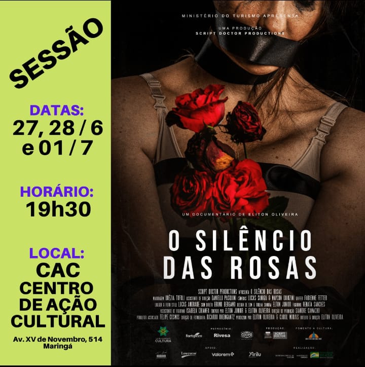 Serviço Documentário “O Silêncio das Rosas”. Quando: 27 e 28/06 e 1º/07, às 19h30. Onde: CAC (Av. XV de Novembro, 514 - Zona 01, Maringá - PR). Entrada gratuita.