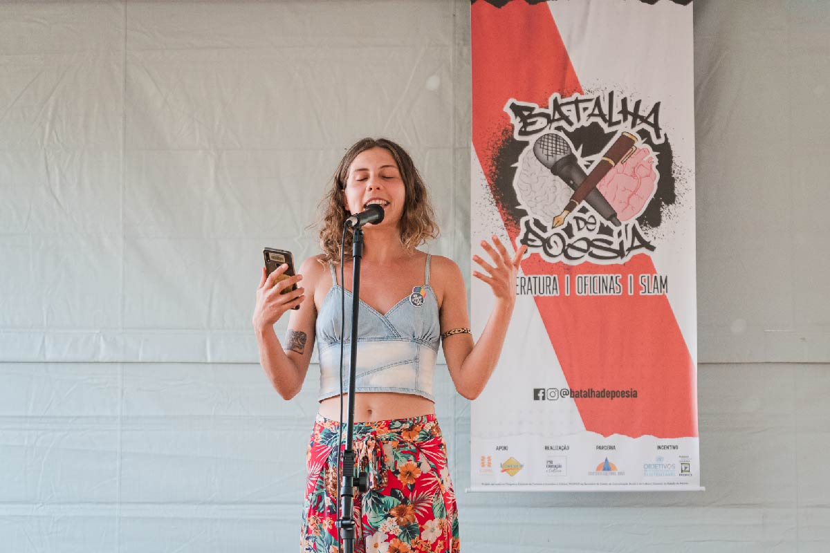 “Nas oficinas, a gente descontrói a imagem da poesia como uma arte elitizada e mostra poetas brasileiros da cena dos saraus e slams que falam sobre o nosso dia a dia. É uma poesia que dialoga com a gente”, explica a produtora cultural e professora de literatura Érica Paiva, coordenadora do projeto e uma das oficineiras. Ela ministra a oficina “Poesia e Sociedade” nos dias 20, 21 e 22 de setembro.